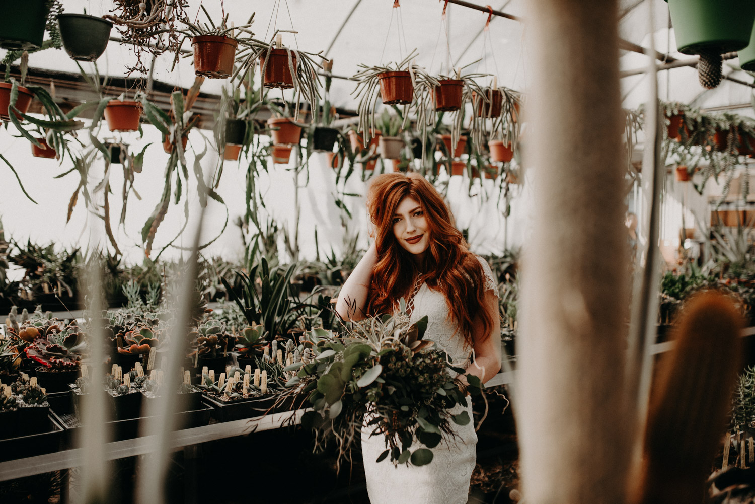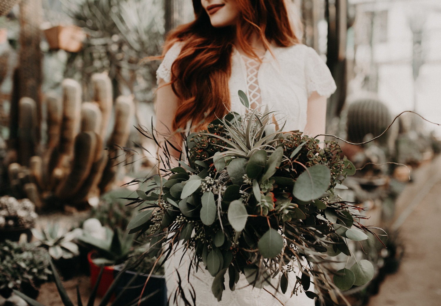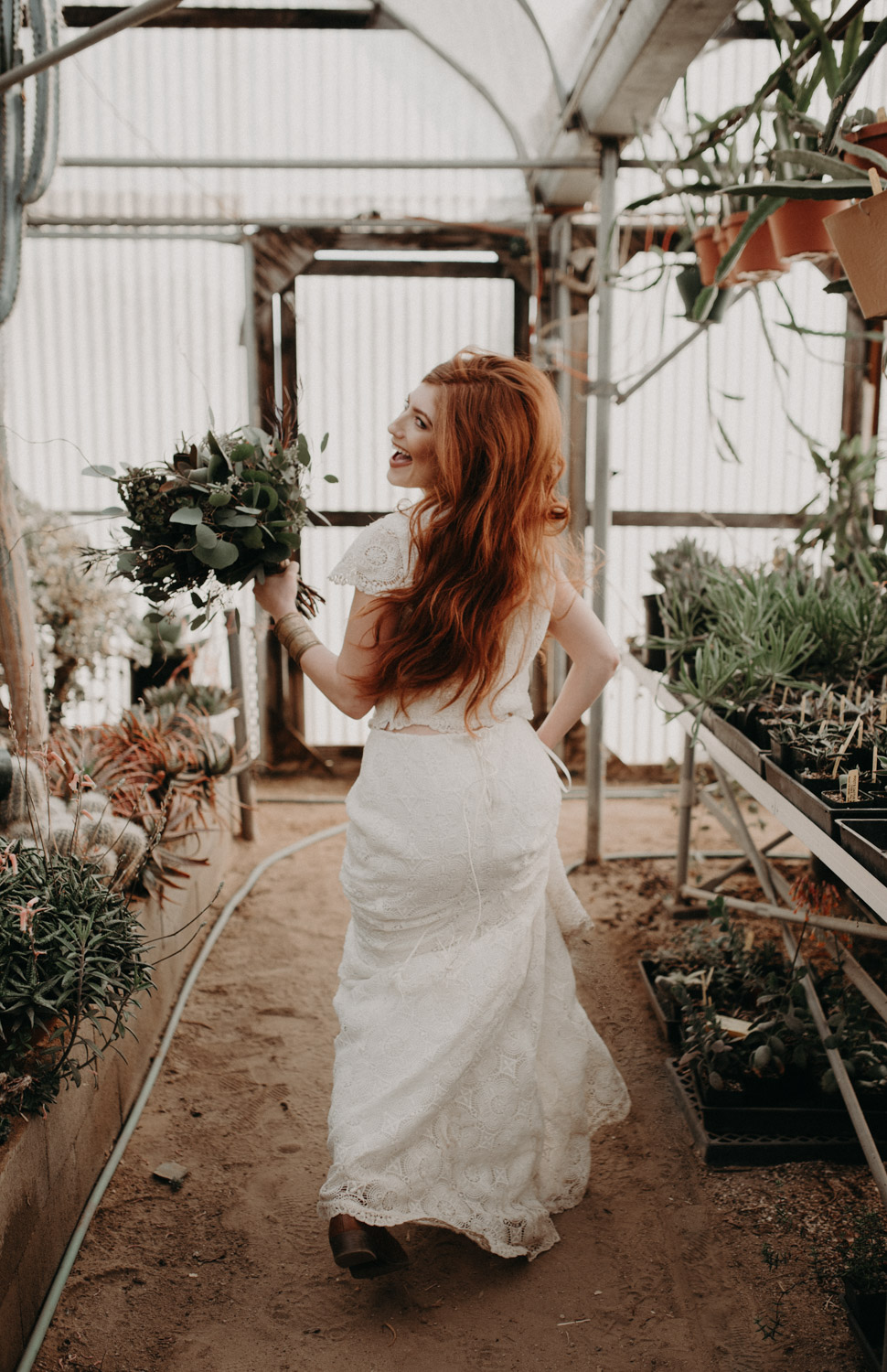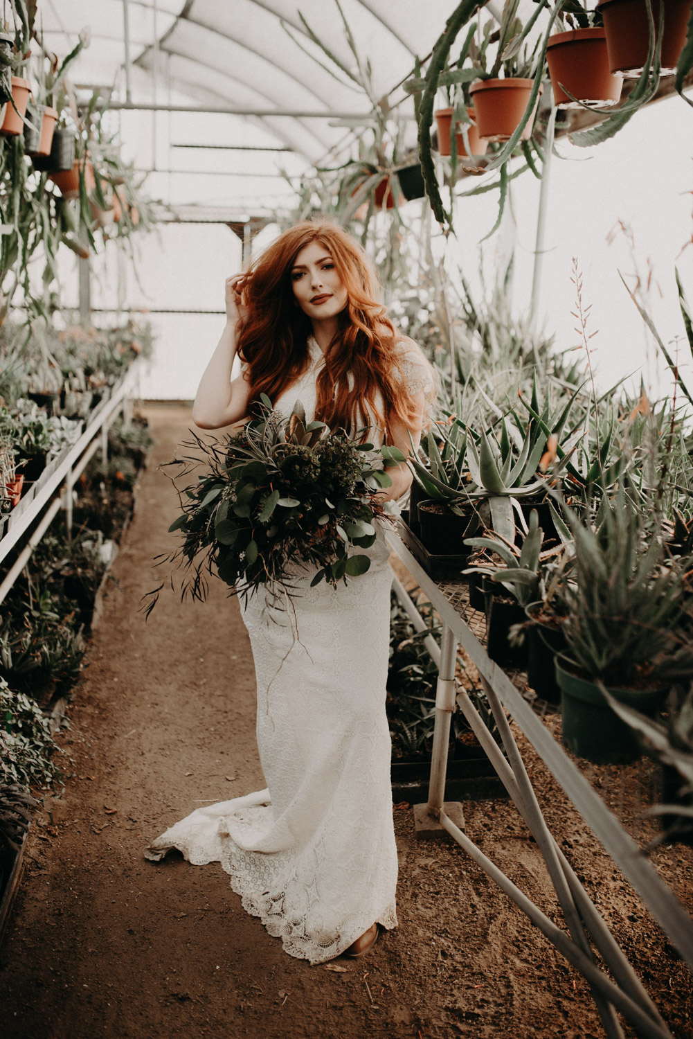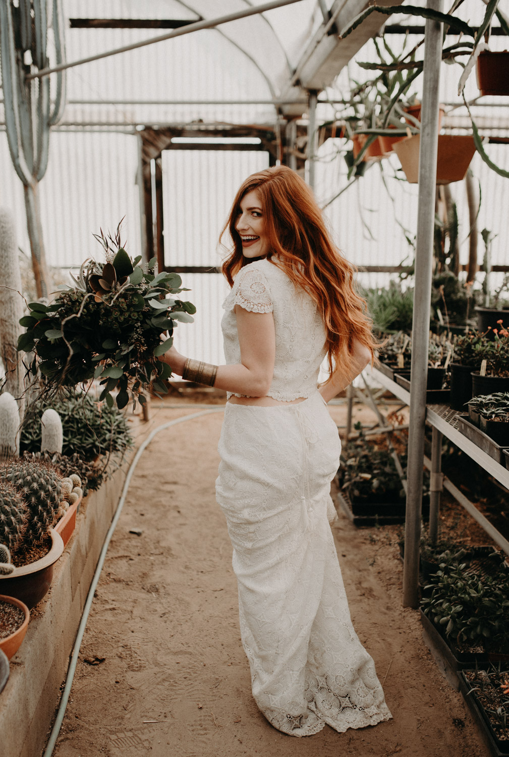 Beautiful Leah. An Amazingly, Cool Daughters Of Simone Wedding Gown. Gorgeous Florals by Farmington Flowers. Magical Poots House of Cactus. Nuff said. I died. Beautiful Leah, a