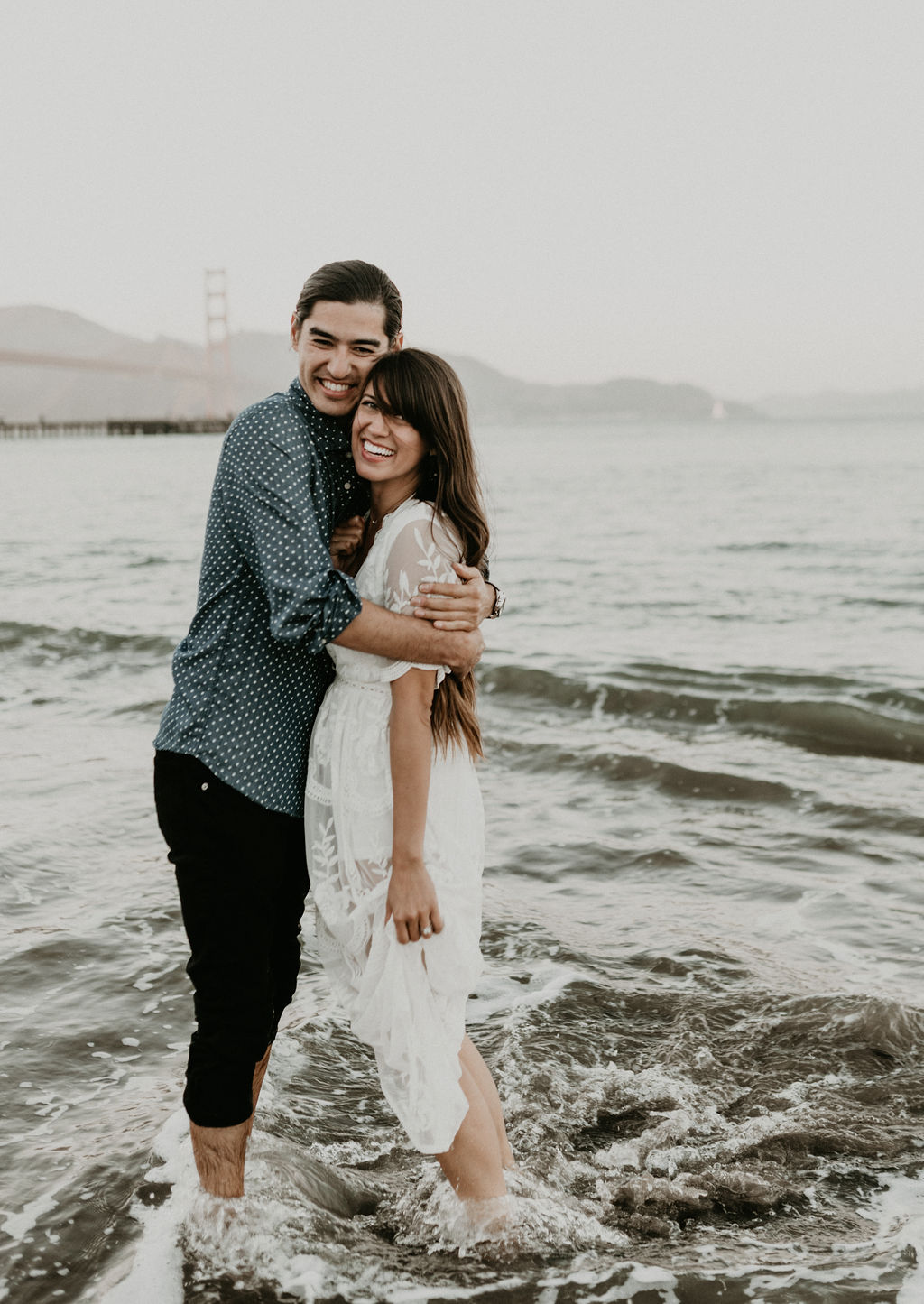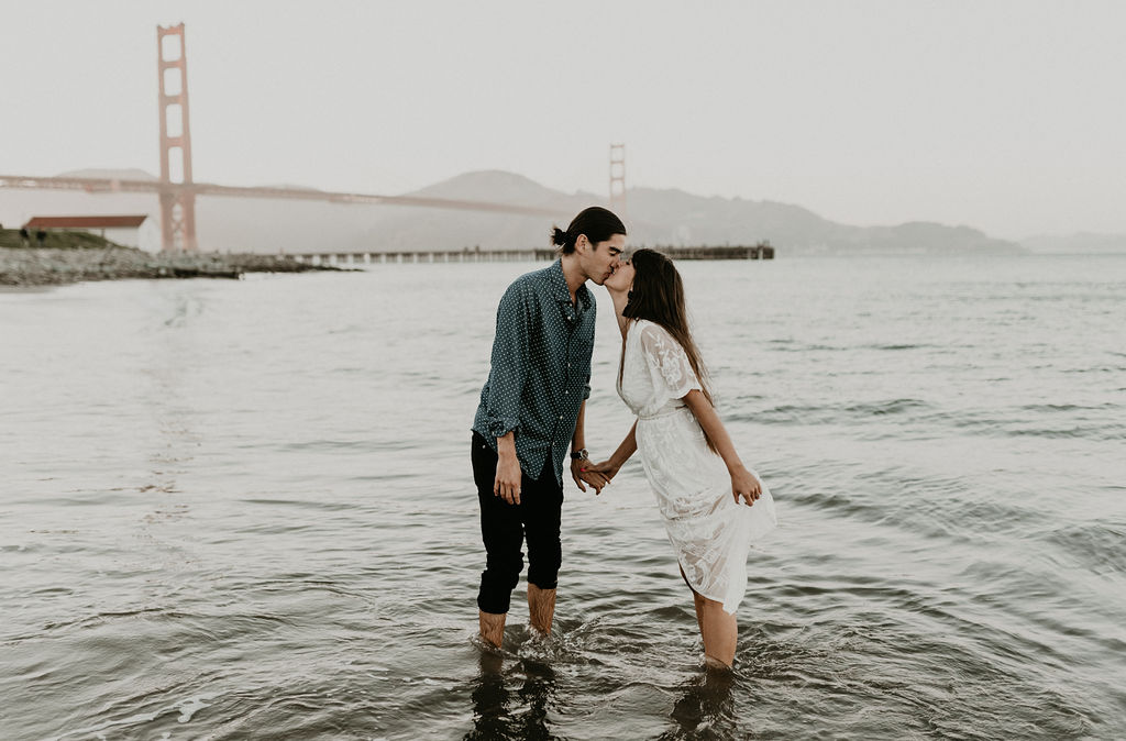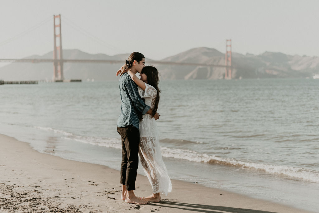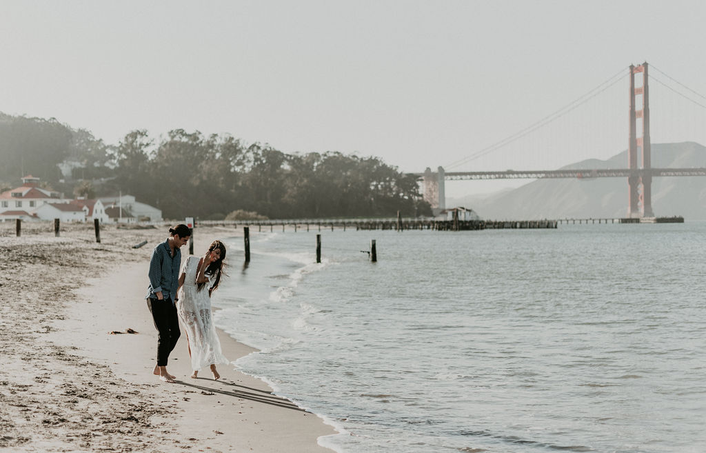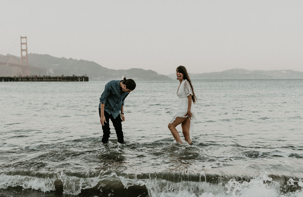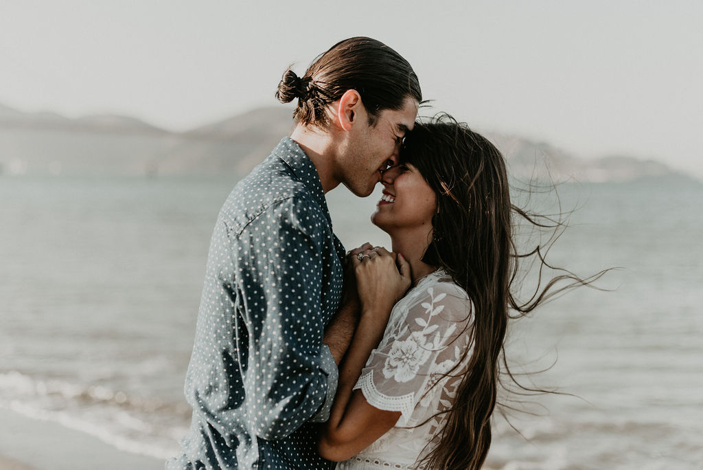So when Melissa + Daniel inquired with me last year for their 2019 wedding, I was torn. On one hand it was my birthday weekend. On the other hand they were seemingly Hair Gods and how could I say no? Long story short, Hair God status trumps the Birthday one so here we are. Lol Neither of them are born in SF, but this is where they met, work and live so this is where they decided to take their engagements. The day was a bit windy and the water was freezing but that didn’t stop these two from having a good time and making the most of it.