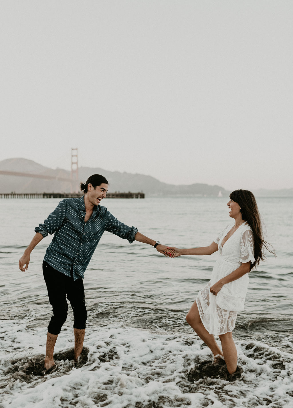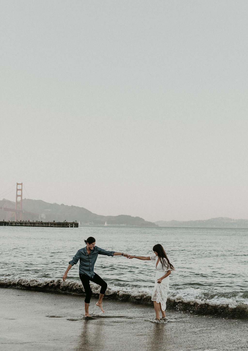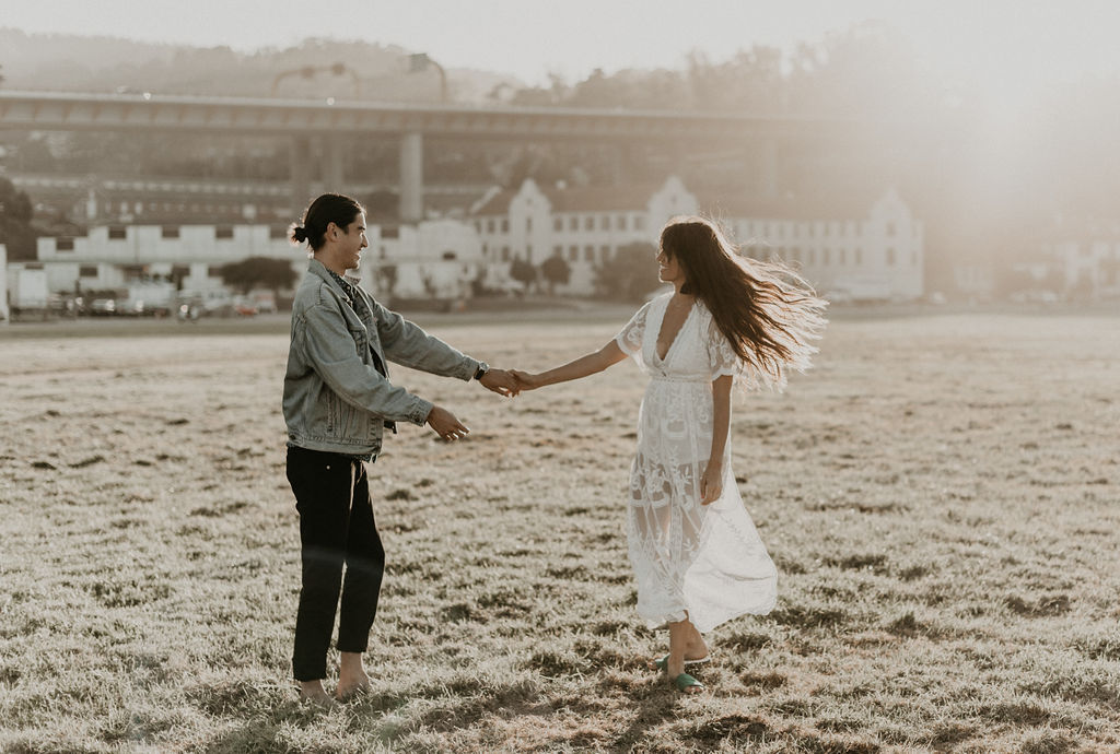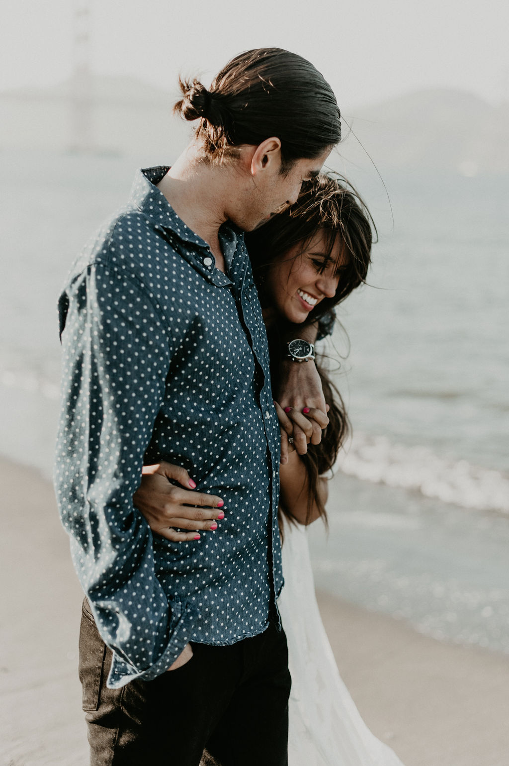So when Melissa + Daniel inquired with me last year for their 2019 wedding, I was torn. On one hand it was my birthday weekend. On the other hand they were seemingly Hair Gods and how could I say no? Long story short, Hair God status trumps the Birthday one so here we are. Lol Neither of them are born in SF, but this is where they met, work and live so this is where they decided to take their engagements. The day was a bit windy and the water was freezing but that didn’t stop these two from having a good time and making the most of it.