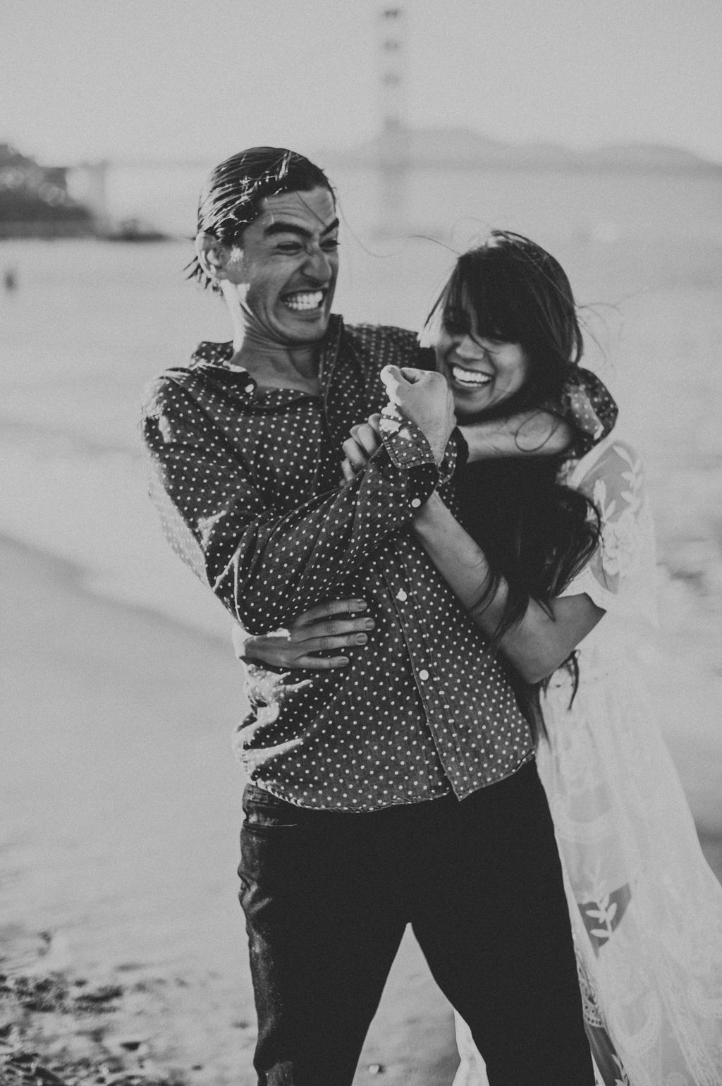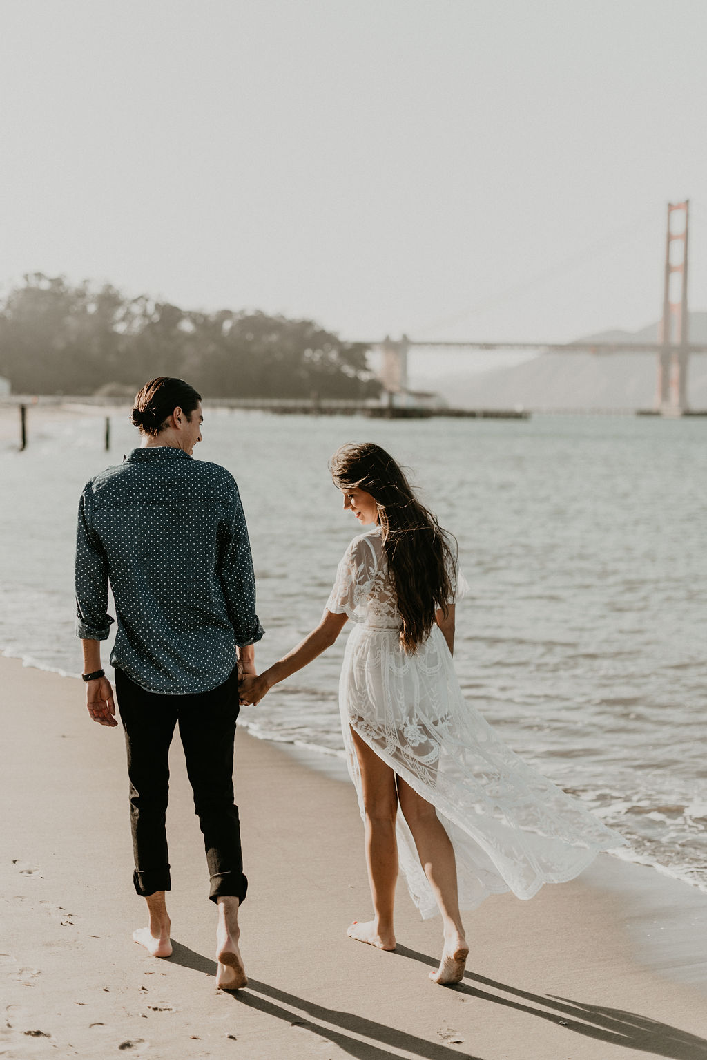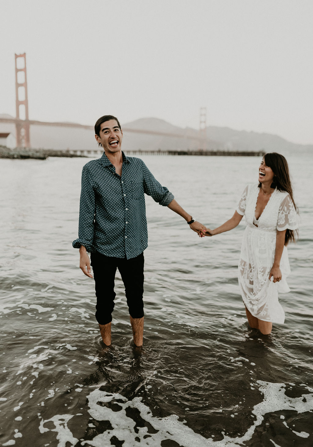 So when Melissa + Daniel inquired with me last year for their 2019 wedding, I was torn. On one hand it was my birthday weekend. On the other hand they were seemingly Hair Gods and how could I say no? Long story short, Hair God status trumps the Birthday one so here we are. Lol Neither of them are born in SF, but this is where they met, work and live so this is where they decided to take their engagements. The day was a bit windy and the water was freezing but that didn’t stop these two from having a good time and making the most of it.